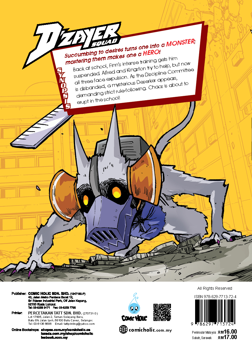 Succumbing to desires turns one into a MONSTER; mastering them makes one a HERO! 🆕 D'ZAYER Squad ✨ For Ages: 7+ 📚 About the Series: Follow young heroes in D'ZAYER as they fight monsters that aren't just evil beings, but troubled youths consumed by dark desires. The D'ZAYER Squad is on a mission to save these lost souls. 😥 Bullying is everywhere, and it's heartbreaking to see kids struggling with it. Want to help them learn self-defense and develop a sense of justice? ✨ Why It Matters: 🚀 Highlights: The story about [ Isu 7. DISCIPLINE ] Back at school, Finn's intense training gets him suspended. Alfred and Kingston try to help, but now all three face expulsion. As the Discipline Committee is disbanded, a mysterious Deserker appears, demanding strict rule-following. Chaos is about to erupt in the school!