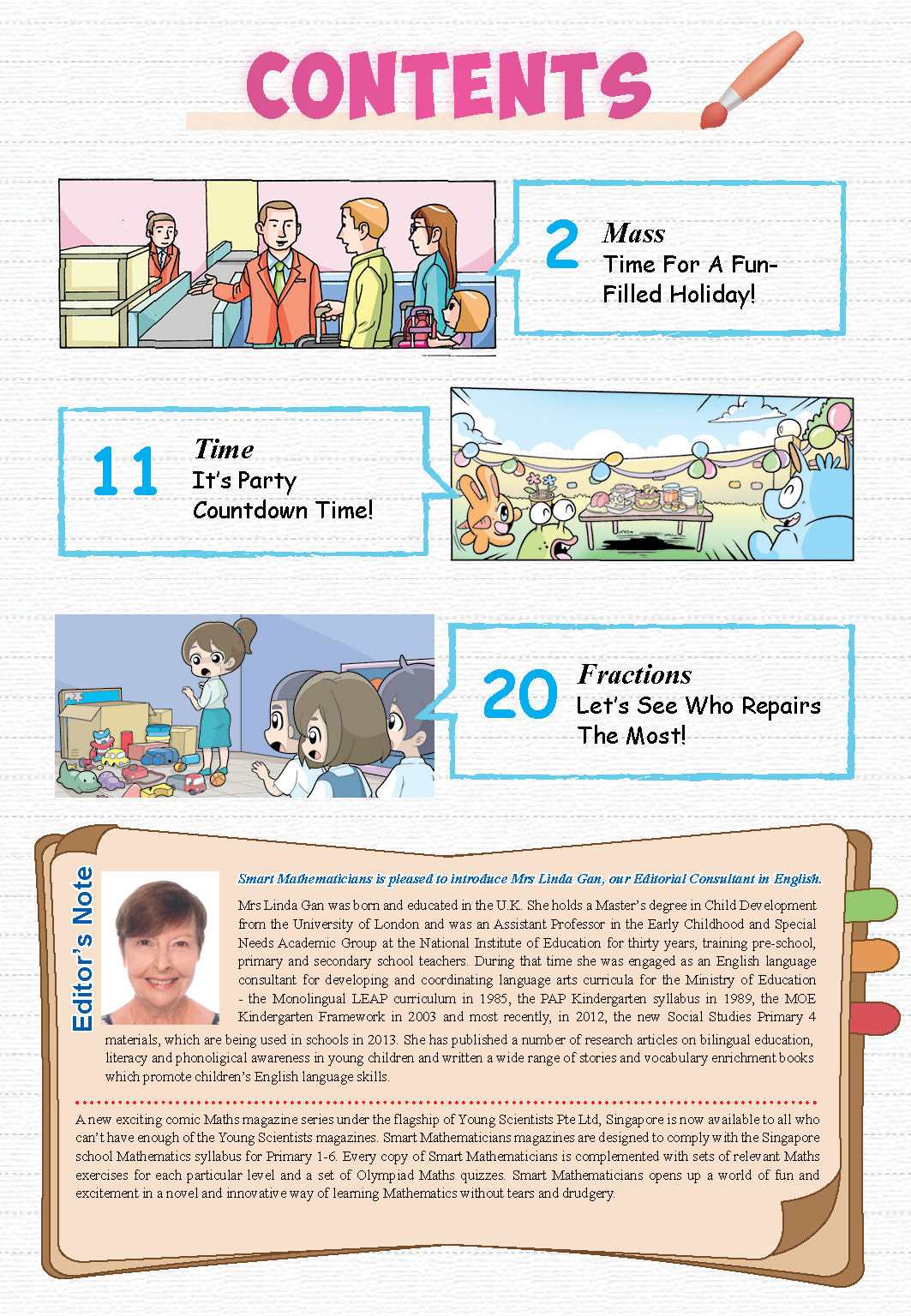[Smart Mathematicians Lower Primary Issue 2025 ] Smart Mathematicians magazines are designed to comply with the Singapore school Mathematics syllabus for Primary 1-6. Every copy of Smart Mathematicians is complemented by sets of relevant Maths exercises for each particular level and a set of Maths Olympiad quizzes. Smart Mathematicians opens up a world of fun and excitement in learning Mathematics without tears and drudgery.
