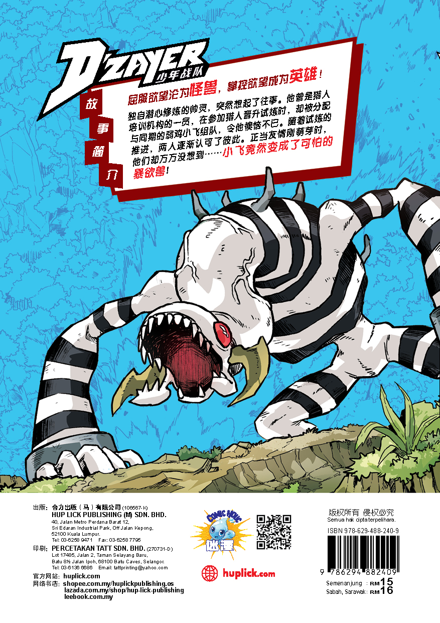 ✨ 适合年龄:7岁以上 📚 系列简介: 在《D’ZAYER》系列中,你将跟随一群勇敢的少年,踏上与怪物战斗的冒险旅程。那些怪物并非外来的邪恶生物,而是被坏的欲望吞噬的少年们。他们在黑暗中迷失,而【D'ZAYER 少年战队】的使命,就是拯救这些陷入困境的灵魂,并在过程中学会如何控制欲望、管理情绪和保护他人。 🚀 漫画亮点: 漫画中生动鲜艳的人物形象和充满动态感的故事场景极具观赏性,符合少年读者的视觉审美。 不仅是冒险故事,其中也深入探讨了角色的内心成长过程,尤其是如何应对内心欲望和压力,帮助小朋友从中学会处理现实生活中的情感问题,保持内心平衡。 以主角作为视角,在团队中学会沟通和包容,理解不同观点的重要性,共同完成目标。 🆕【D'ZAYER 少年战队】第八卷《强者》 ⚡ 独自潜心修炼的帅灵,突然想起了往事。他曾是猎人培训机构的一员, 在参加猎人晋升试炼时, 却被分配与同期的弱鸡小飞组队, 令他懊恼不已。随着试炼的推进, 两人逐渐认可了彼此。正当友情刚萌芽时, 他们却万万没想到……小飞竟然变成了可怕的暴欲兽! ✨ 教育意义: – 学会不因缺点或弱势而歧视他人,发现彼此优点。