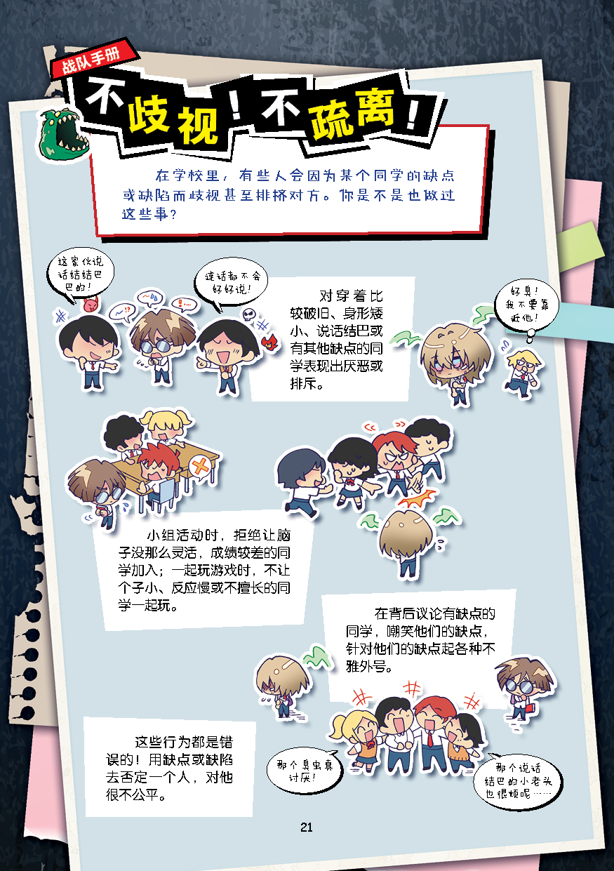 – 理解被嘲笑、排挤所带来的伤害,学会同理心。